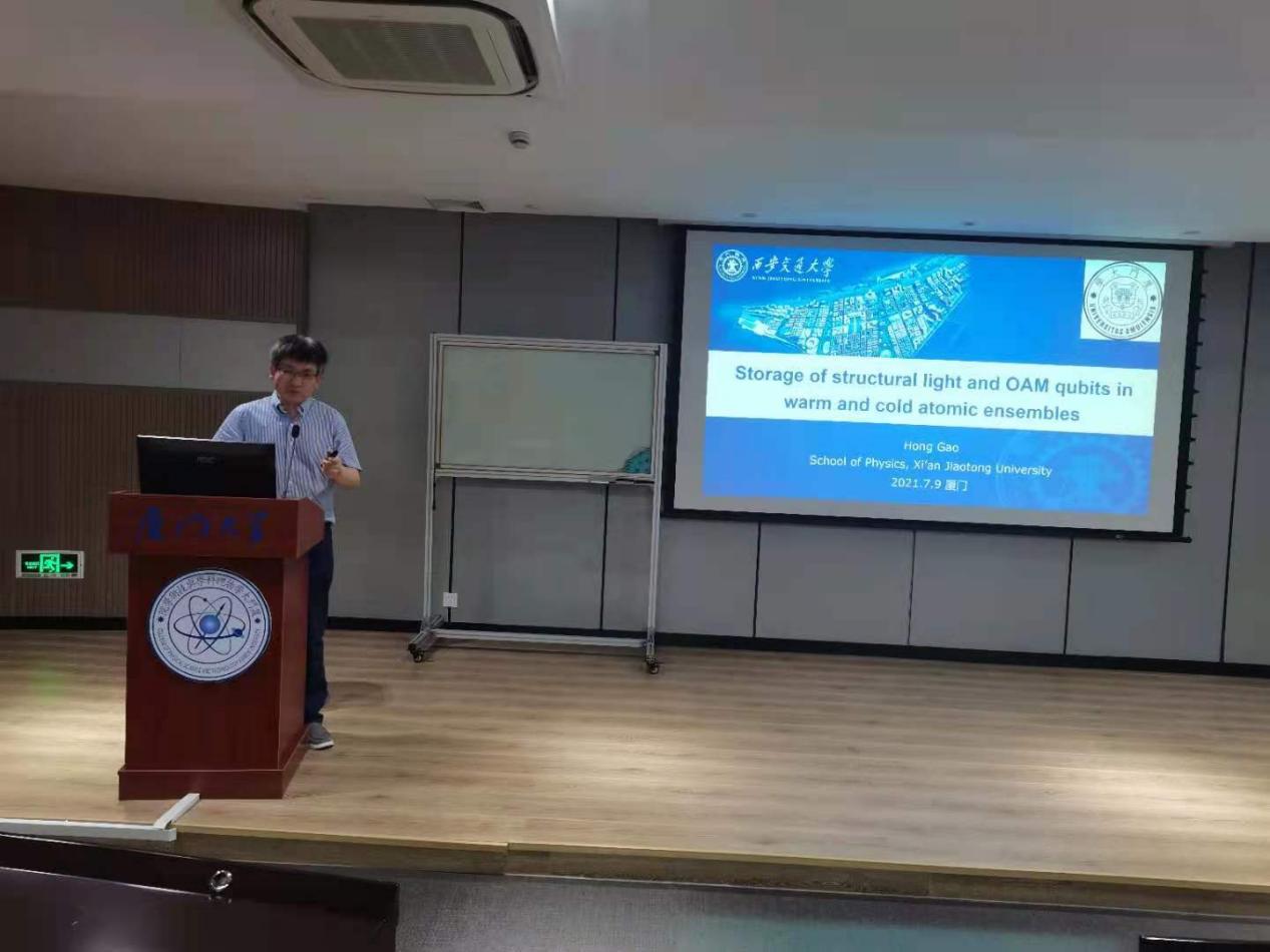 高宏教授作“Storage of structural light and O AM qubits in warm and cold atomic ensembles ”学术讲座