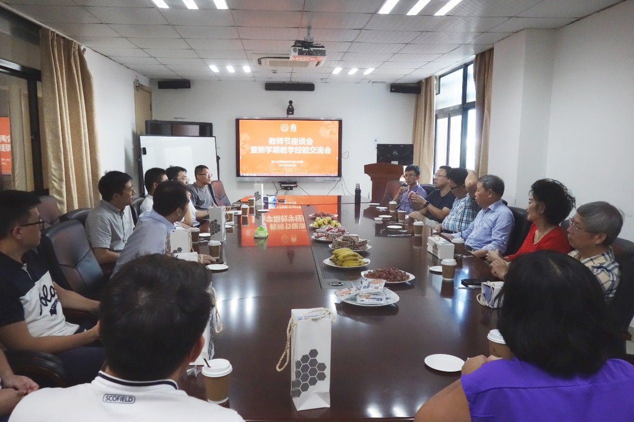 9月10日下午,我院在物理大楼307会议室召开教师节座谈会暨新学期教学经验交流会,喜迎第37个教学节。学院党委书记李书平教授、党委委员、物理学系主任吴顺情教授、物理学系副主任吴志明教授、资深教师代表与新进教师代表参与本次座谈会,共同交流分享教学经验。会议由吴顺情教授主持。座谈会在轻松愉悦的氛围中开启。吴顺情教授为新进教师介绍了到场的资深教师。陈金灿老师是物理学院退休的老院长,《热力学统计物理》国家级精...