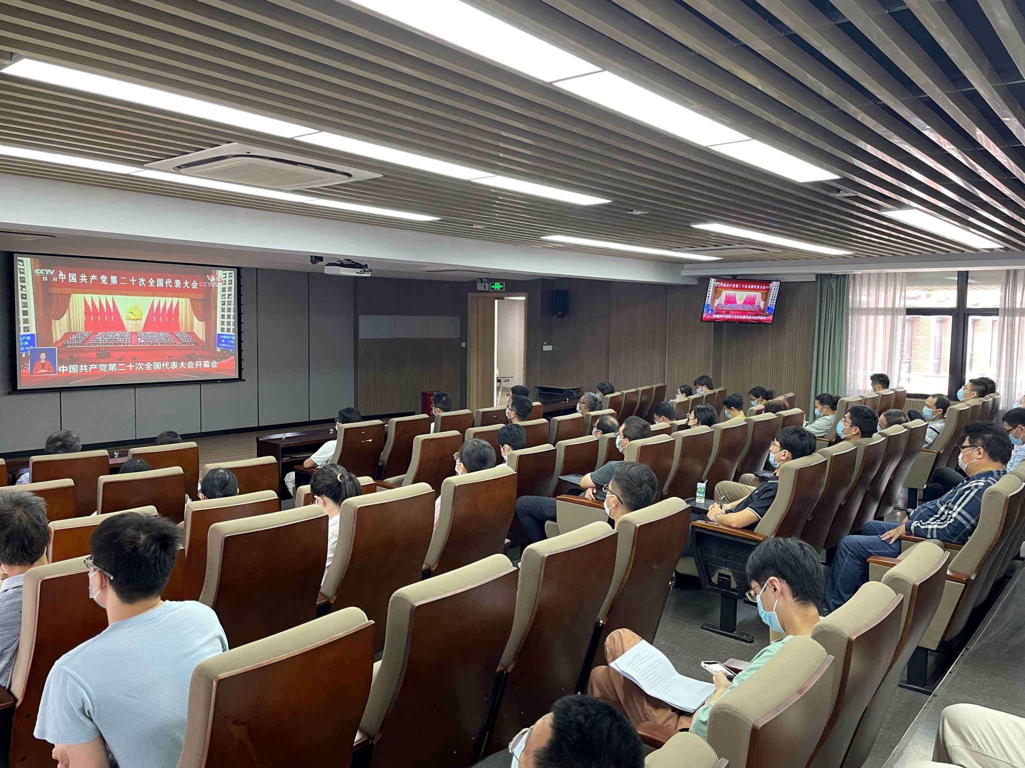 2022年10月16日上午10时,中国共产党第二十次全国代表大会在京隆重开幕,物理科学与技术学院全体师生党员满怀期待齐聚物理大楼552报告厅及117教室,共同观看党的二十大直播盛况,认真聆听习近平代表第十九届中央委员会向大会作的报告,热切关注所提议题。在直播会场,物理科学与技术学院全体师生党员佩戴党员徽章,倾听、领悟习近平总书记重要讲话,全神贯注学习党的二十大精神,享受着这次珍贵的政治盛宴。本次大会的主题是“高举中国特色社会主义伟大旗帜,...