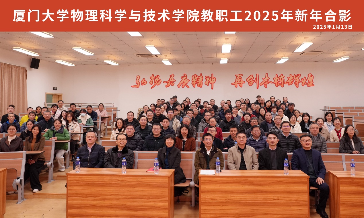 2025年1月13日上午,物理科学与技术学院在厦门大学海韵园物理大楼117报告厅召开了2024年全院教职工大会。本次大会旨在总结过去一年的工作成果,展望未来发展方向,同时对学院的重要事项进行讨论与部署。会议由学院党委副书记郑诚明主持,学院全体教职工参加了会议。首先进行新员工介绍环节。2024年学院共新进4位教师和3位党政管理老师。新进教师罗松、李盼盼、潘志明依次上台作自我介绍和研究方向说明,展现出蓬勃的朝气与创新...