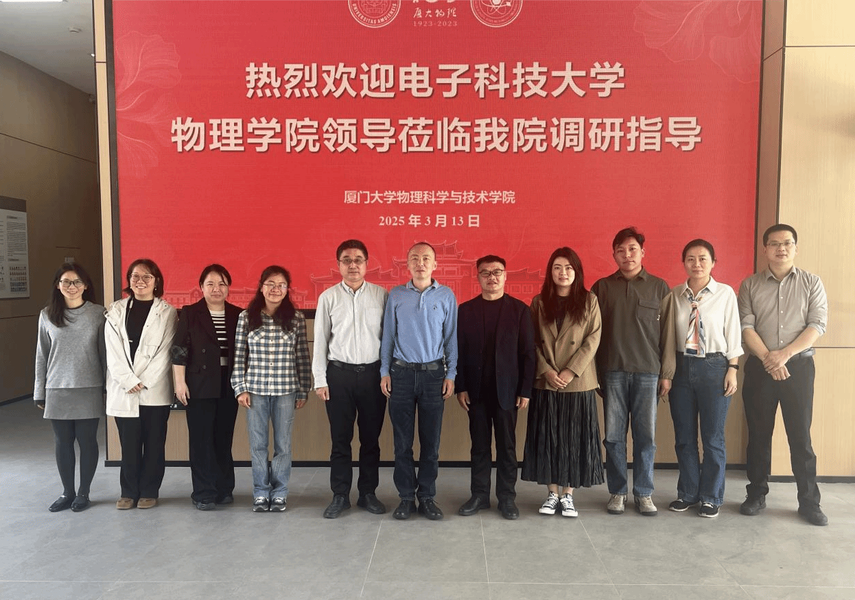 3月13日上午,电子科技大学物理学院党委书记左文龙率队前来我院开展调研交流活动。我院党委书记李书平、党委副书记郑诚明、副院长陈理想出席此次调研座谈会。参加座谈会的还有双方团委、教学秘书、辅导员代表,会议由李书平书记主持。会前,电子科技大学物理学院一行参观“厦门大学物理学科创建一百周年成就展”展厅,进一步了解了厦大物理学科百年发展历程。 会上,李书平书记对电子科技大学物理学院各位老师的到访表示了热烈欢迎。...