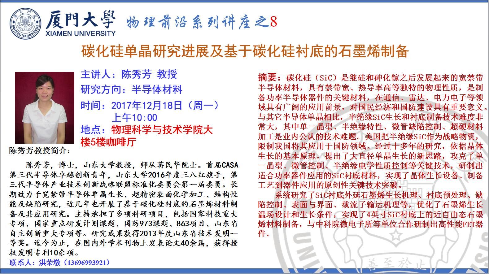 2017年10月18日至20日,第二届国际第三代半导体创新创业大赛(厦门赛区)在福建厦门举行。经过三天的激烈比赛,我院孙永强等同学组成“厦门大学孙永强团队”,凭借“6英寸碳化硅厚膜外延生长”项目在100多个参赛项目...