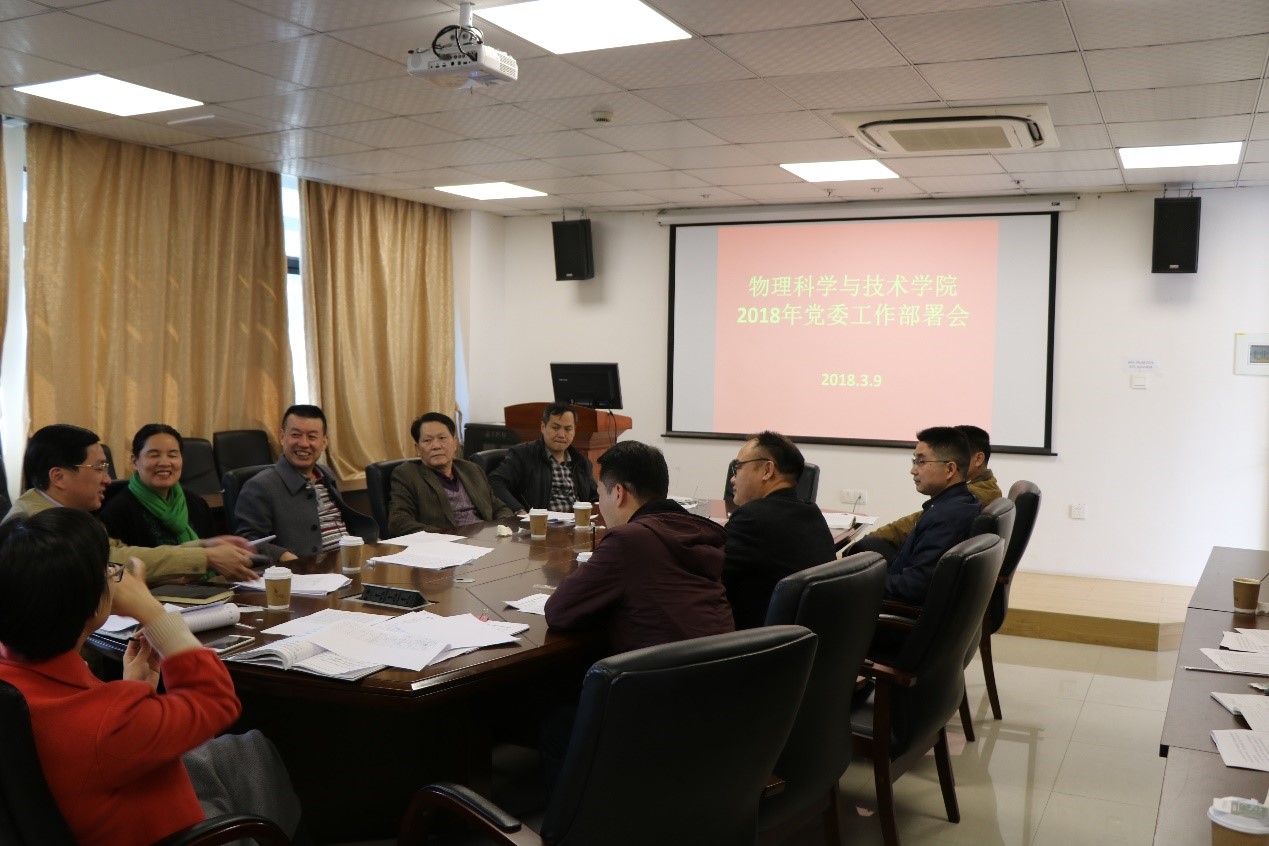 2018年3月9日下午,物理科学与技术学院党委在物理航空大楼438室召开党委扩大会议,部署新学期党建重点工作并开展支部书记代表述职。本次会议由党委书记林奋强主持,学院党委委员、全体教工支部书记、院团委书记、副书记、辅导员、学生支部书记参加了本次会议。林奋强书记传达了学校2018年工作布置会议的精神,2018年是贯彻落实党的十九大的开局之年,是我校落实“十三五”规划,深化综合改革、全面推进“双一流”建设的关键一年...